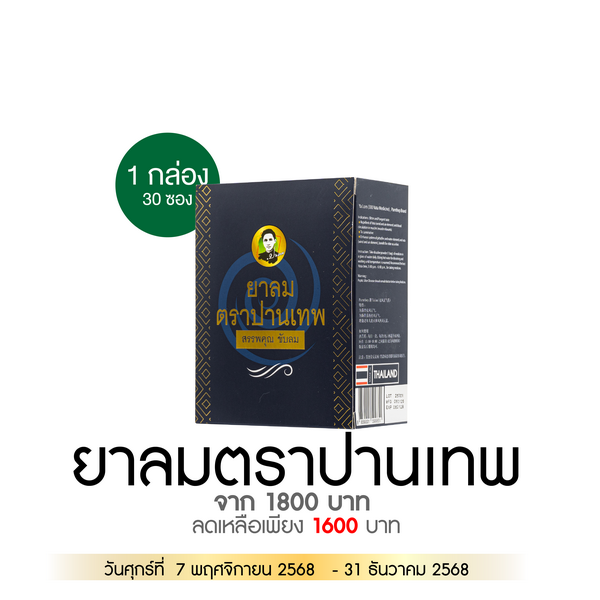1. "ยาลมกล่องใหญ่" ตราปานเทพ บรรจุ 30 ซอง